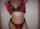Еротичний комплект білизни мереживний чорний з червоним пухом