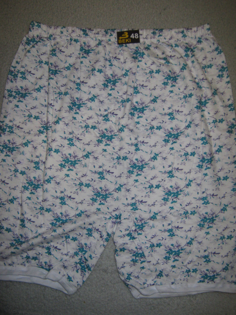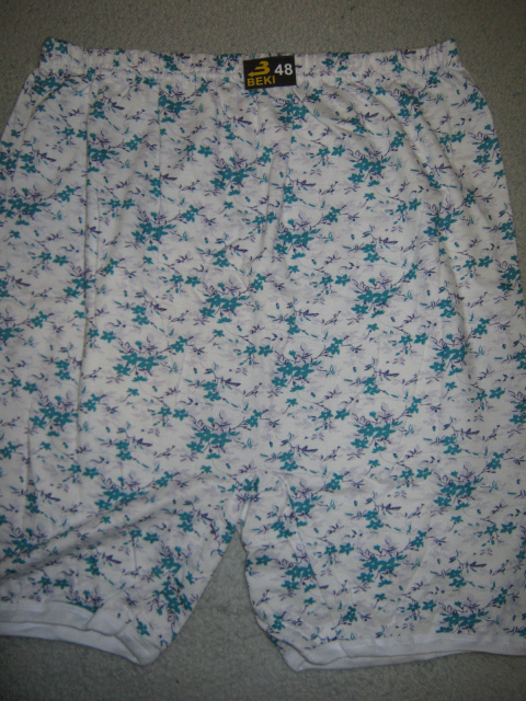 Якісні жіночі панталони Bекі, 100% бавовна, утеплені, всередині з начосом, подовжені, виробництво Узбекистан, зверху гумка, по ніжці біла окантовка, на білому тлі квіти (все, як на фото). Розмір у наявності тільки 48 (так і вказано). Посадка середня, хороша, дихаюча тканина, дуже м'які і приємні до тіла, майже не тягнуться, ластовиця встрочена вставкою.