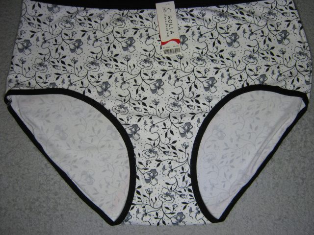 Жіночі трусики супербатали Solla, бамбукова тканина, на білому тлі чорний малюнок - гілочки, квіти, по всьому виробу, навколо ніжки і по верху гумки-окантовки в тон (все, як на фото). Розміри в наявності візуально в розтягнутому вигляді тільки 60-62 (вказано розмір 3XL/4XL, розмір універсальний і 64-66 (5XL/6XL відповідно).