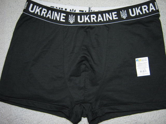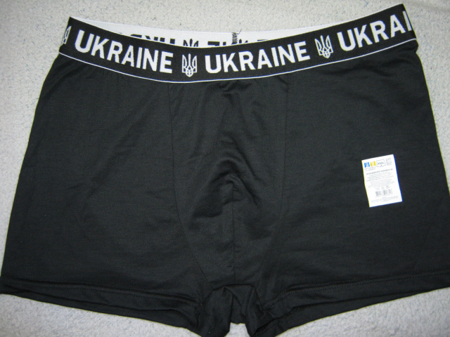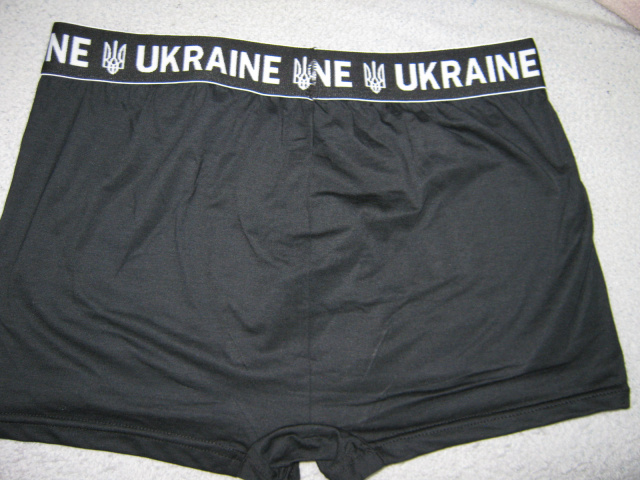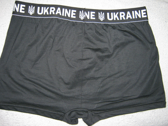 Чоловічі труси-боксери виробництво Україна чорні, по верху щільна чорна гумка з написом Ukraine і тризубом (все, як на фото). Розмір у наявності візуально тільки 54-56 (вказаний розмір 3XL), розмір універсальний. Виміри: бічний шов 29см, НОС у нерозтягнутому вигляді 46см, тягнуться до НОС 61, крок 5см (внутрішній шов), НО по гумці 40-61см, середня посадка, хороша, дихаюча тканина (95% бавовна, 5% еластан), м'які і приємні до тіла, добре тягнуться.